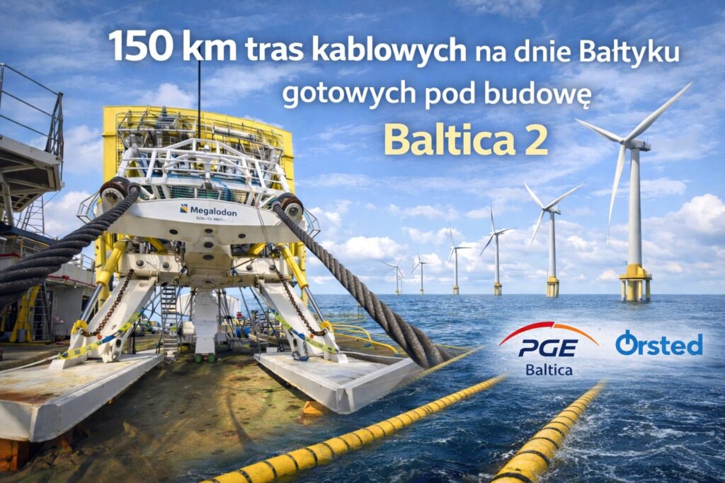 Na dnie Morza Bałtyckiego zakończono przygotowanie 150 km tras dla kabli wewnętrznych, które połączą turbiny morskiej farmy wiatrowej Baltica-2 z morskimi stacjami elektroenergetycznymi. To pierwszy kluczowy etap prac podwodnych realizowanych