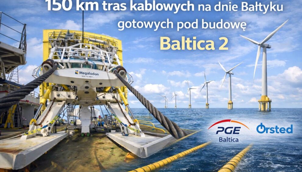 Na dnie Morza Bałtyckiego zakończono przygotowanie 150 km tras dla kabli wewnętrznych, które połączą turbiny morskiej farmy wiatrowej Baltica-2 z morskimi stacjami elektroenergetycznymi. To pierwszy kluczowy etap prac podwodnych realizowanych przez PGE Baltica i Ørsted, poprzedzający układanie właściwej infrastruktury kablowej.
