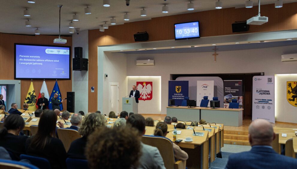 Ponad 100 przedsiębiorców wzięło udział w warsztatach poświęconych zasadom współpracy przy największych projektach energetycznych w Polsce – morskich farmach wiatrowych i elektrowni jądrowej. Spotkanie, które odbyło się w Urzędzie Marszałkowskim Województwa Pomorskiego w Gdańsku, zorganizowali wspólnie Polskie Elektrownie Jądrowe (PEJ), Bank Gospodarstwa Krajowego (BGK) oraz PGE Baltica. Celem wydarzenia było praktyczne wsparcie firm zainteresowanych wejściem do łańcuchów dostaw projektów offshore oraz energetyki jądrowej – dwóch kluczowych obszarów polskiej transformacji energetycznej. Uczestnicy poznali wymagania kontraktowe, rozwiązania gwarancyjne i standardy, które obowiązują przy tak dużych inwestycjach infrastrukturalnych.
