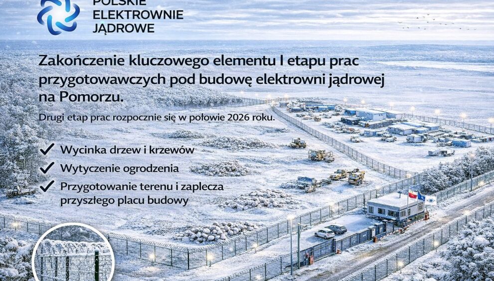 Polskie Elektrownie Jądrowe zakończyły kluczowy element pierwszego etapu prac przygotowawczych związanych z realizacją elektrowni jądrowej na Pomorzu. Zgodnie z harmonogramem inwestycji przeprowadzono wycinkę drzew i krzewów, wytyczono ogrodzenie oraz przygotowano teren i zaplecze przyszłego placu budowy. Spółka, po uzyskaniu odpowiedniego pozwolenia, będzie gotowa do przejścia do drugiego etapu prac przygotowawczych…