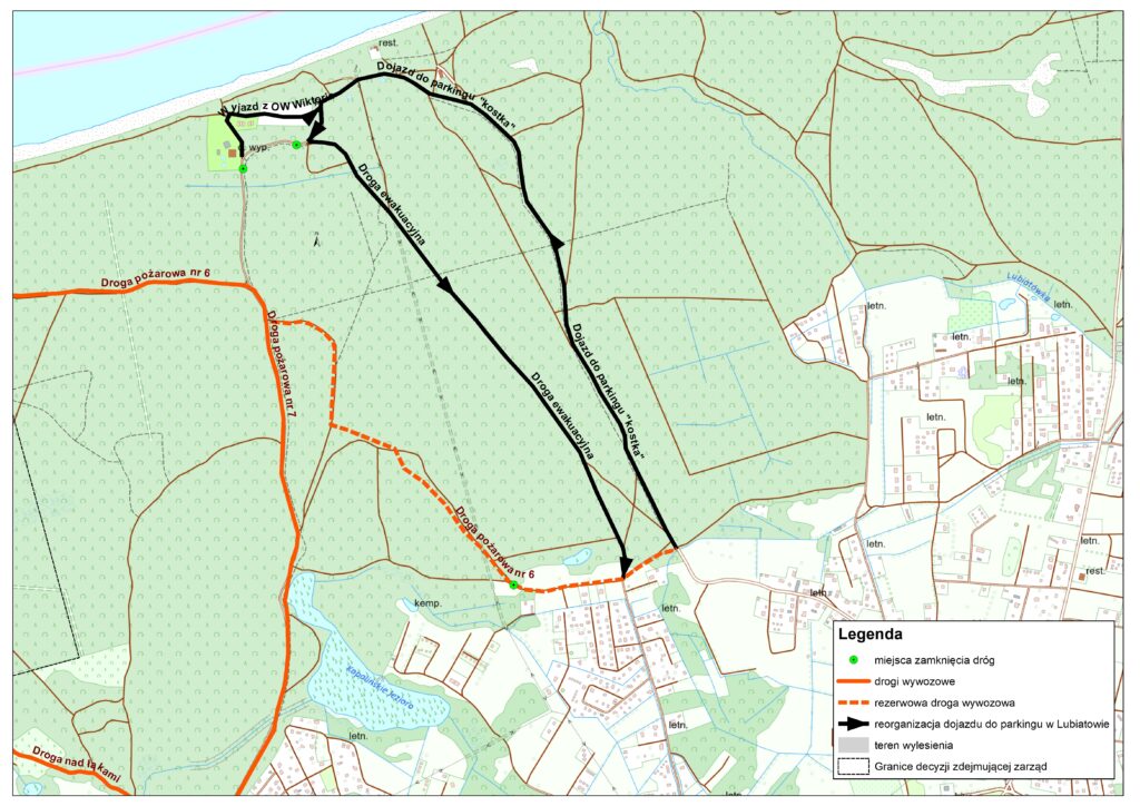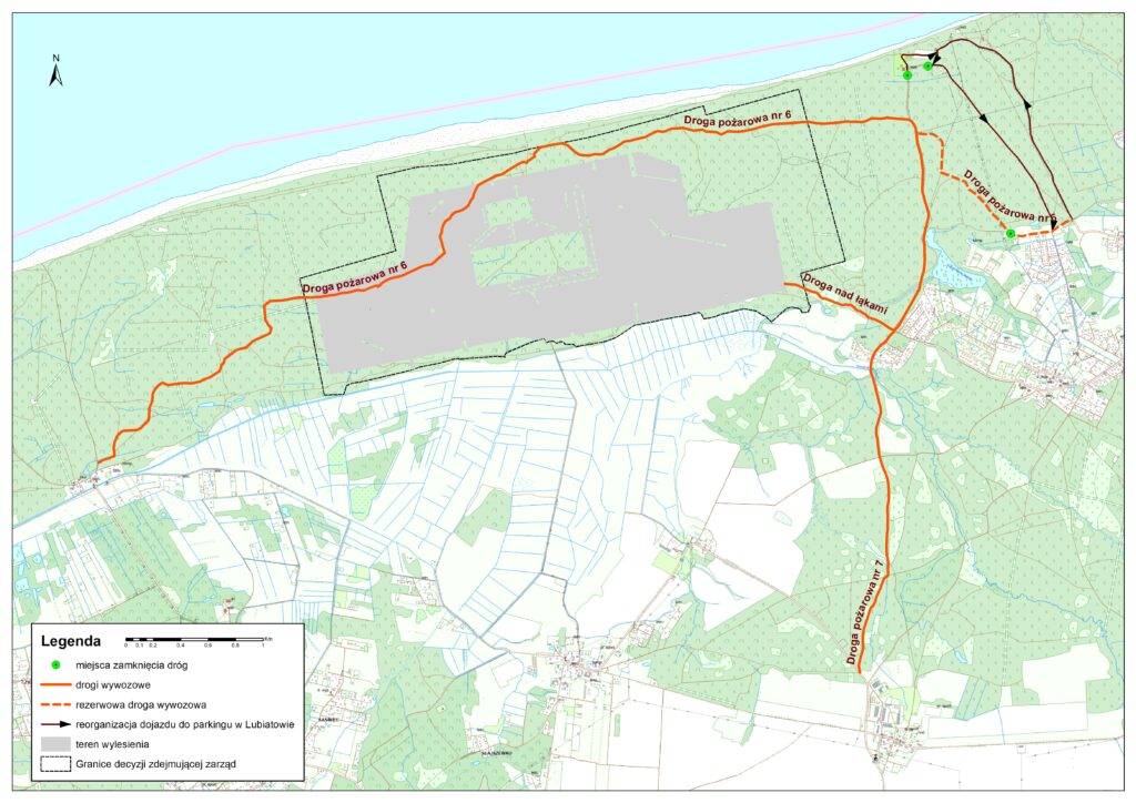 Materiał drzewny będzie wywożony z terenu prac drogami pożarowymi nr 6 i 7 w kierunku Stilo oraz Jackowa. Transporty nie będą prowadzone z wykorzystaniem dróg biegnących przez miejscowości Lubiatowo, Kopalino i Słajszewo… „Każdy załadunek będzie nadzorowany przez miejscowych leśników. Zakładamy, że transport pierwszych partii drewna będzie mieć miejsce w połowie listopada…” – informuje Nadleśniczy Mikoś.
