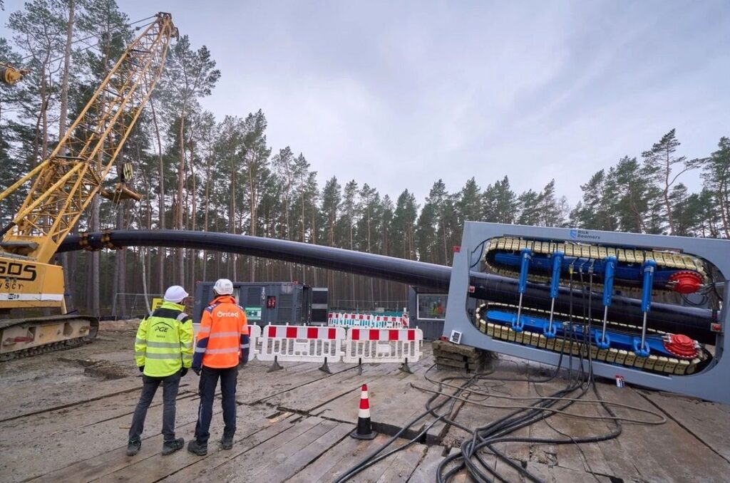 Prace trwały dziewięć miesięcy [od lipca 2025 roku] i obejmowały przygotowanie czterech kanałów kablowych o średnicy 800 mm i długości około 1240 m każdy. Łącznie powstało więc blisko 5 km infrastruktury, która w przyszłości poprowadzi energię z morza do krajowej sieci. Rury montowano z 18‑metrowych odcinków, zgrzewanych doczołowo na placu budowy. Sama prefabrykacja wymagała 42 transportów komponentów, a prace prowadzono w warunkach, które potrafiły zmieniać się z dnia na dzień – od letnich upałów po zimowe mrozy sięgające -20°C, przy śniegu, oblodzeniu i silnym wietrze.