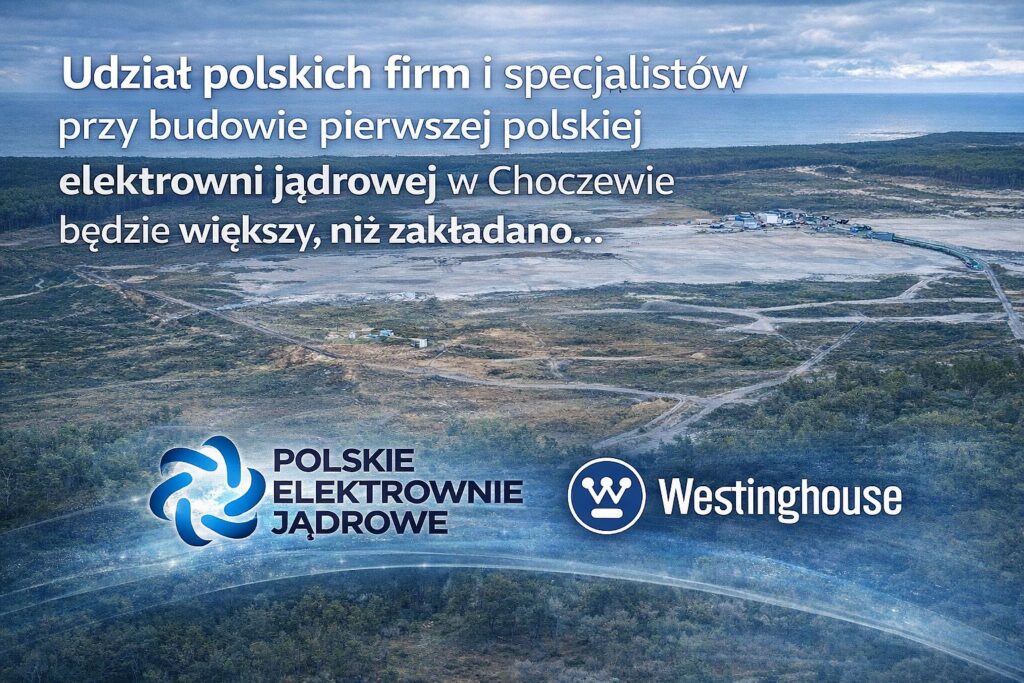 Budowa pierwszej polskiej elektrowni jądrowej w Choczewie nabiera rozpędu, a wraz z nią rośnie rola krajowych firm i specjalistów. Amerykański „Westinghouse Electric Company”, dostawca reaktorów AP1000, potwierdził, że udział Polaków w projekcie będzie znacznie większy, niż zakładano na początku. Początkowo polskie przedsiębiorstwa miały być zaangażowane głównie przy pracach związanych z blokiem nr 3, jednak dynamiczny rozwój lokalnych wykonawców sprawił, że ich kompetencje zostaną wykorzystane również przy blokach 1 i 2. Jak podkreślają przedstawiciele Westinghouse, firma kupuje tam, gdzie buduje, dlatego łańcuchy dostaw mają być w dużej mierze europejskie i lokalne.