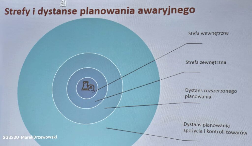 2. Wiele pytań dotyczyło szeroko pojętego bezpieczeństwa mieszkańców, scenariuszy potencjalnych incydentów radiacyjnych i awarii a także stref ochronnych wokół przyszłej elektrowni jądrowej? [Eksperci PAA potwierdzili, że wokół przyszłej elektrowni jądrowej będą niewątpliwie istniały tzw. strefy planowania awaryjnego – jak na załączonej grafice. Co jednak najważniejsze, o ich zakresie i dystansach będzie można dowiedzieć się dopiero po złożonym przez „Polskie Elektrownie Jądrowe” (PEJ) wniosku o wydanie zezwolenia na budowę elektrowni jądrowej, wraz z którym będą m.in. złożone: wstępny raport bezpieczeństwa, raport lokalizacyjny, opis zintegrowanego systemu zarządzania, program badań i monitoringu środowiska w obszarze lokalizacji obiektu jądrowego na etapie jego budowy, program testów przedeksploatacyjnych i program likwidacji obiektu jądrowego. Dopiero później, w oparciu o przeprowadzone analizy i badania PAA będzie w stanie wyliczyć zakres stref i dystanse planowania awaryjnego. Z harmonogramu budowy pierwszej polskiej elektrowni jądrowej wynika, że wniosek o pozwolenie na budowę może zostać złożony w 2026 roku, po zakończeniu prac przygotowawczych i uzyskaniu wszystkich wymaganych zgód administracyjnych. Wraz z kolejnym wnioskiem o wydanie zezwolenia na rozruch elektrowni jądrowej, PEJ będzie musiało przedłożyć m.in. pośredni raport bezpieczeństwa, program rozruchu obiektu jądrowego, program monitoringu radiacyjnego środowiska i uchwałę sejmiku województwa pomorskiego o utworzeniu obszaru ograniczonego użytkowania. PAA „dmucha na zimne” i przy określaniu przyszłych parametrów i norm funkcjonowania elektrowni jądrowej i wykorzystywanego paliwa jądrowego będzie niewątpliwie stosował duży margines bezpieczeństwa. Co prawda nie ma wpływu na to, gdzie i od kogo będzie w przyszłości takie paliwo kupowanie, tym niemniej zawsze może skontrolować, czy jest ono zgodne z normami określonymi w przyszłej decyzji PAA. Agencja nie certyfikuje tez miejsca zakupu takiego paliwa, jednakże będzie mogło sprawdzić, czy spełnia ono standardy (wymagania) bezpieczeństwa. Agencja ma także obowiązek sprawdzić wszelką złożoną przez PEJ dokumentację, głównie pod kątem spełnienia wymogów bezpieczeństwa radiacyjnego. Gdy nie są one spełnione, Prezes PAA nie może wydać zgody/decyzji na budowę, rozruch lub eksploatację obiektu jądrowego. Agencja musi też dopilnować wszystkich możliwych scenariuszy potencjalnych zagrożeń radiacyjnych i rodzajów awarii]
