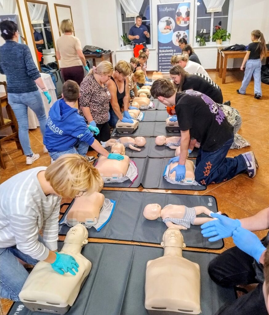 Podczas minionego weekendu w Sołectwie Borkowo Lęborskie odbyło się 4-godzinne szkolenie z pierwszej pomocy i obsługi AED, które w sposób profesjonalny przeprowadziła firma Total Medica. Oprócz części teoretycznej, uczestnicy szkolenia zaliczyli też zajęcia praktyczne. Przekazana w ten sposób wiedza z całą pewnością zostanie skutecznie wykorzystana. Wszyscy otrzymali też certyfikat ukończenia szkolenia z pierwszej pomocy i obsługi AED. Szkolenie zostało przeprowadzone w ramach Programu „Choczewo. Gmina Napędzana Wiatrem”.