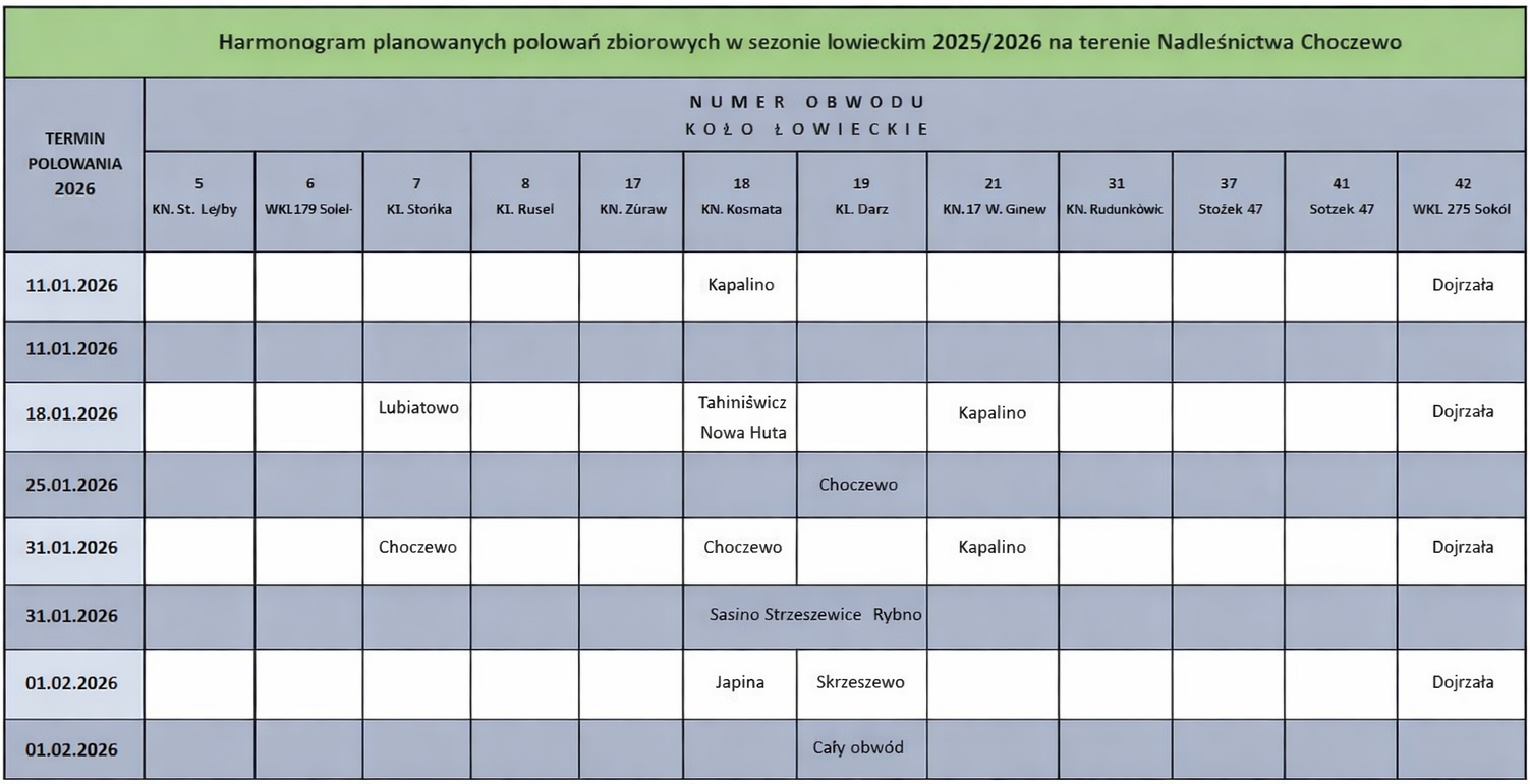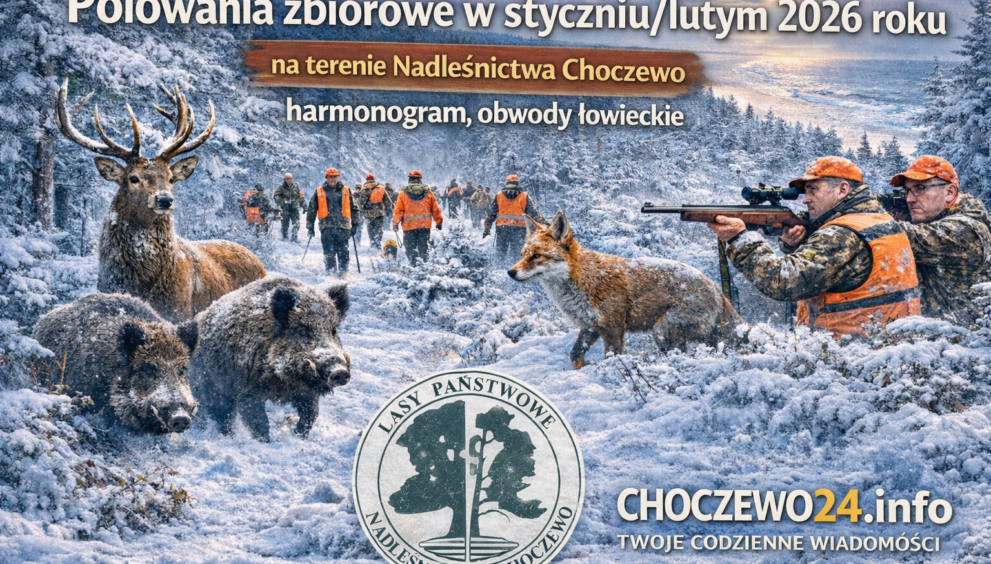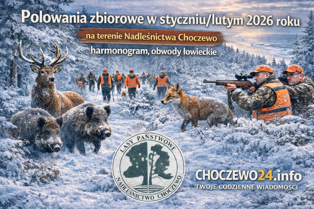 W styczniu i lutym 2026 roku na terenie Nadleśnictwa Choczewo odbędzie się seria polowań zbiorowych organizowanych przez koła łowieckie działające w regionie, m.in. WKŁ 271 Sokół, Ogar, Jeleń, Daniel, Orzeł, Ponowa oraz inne. Zimowy sezon łowiecki to czas wzmożonych działań związanych z gospodarką łowiecką, dlatego nadleśnictwo udostępniło mapę obwodów oraz harmonogram, aby ułatwić mieszkańcom i turystom bezpieczne planowanie wizyt w lesie [harmonogram polowań, obwody łowieckie]